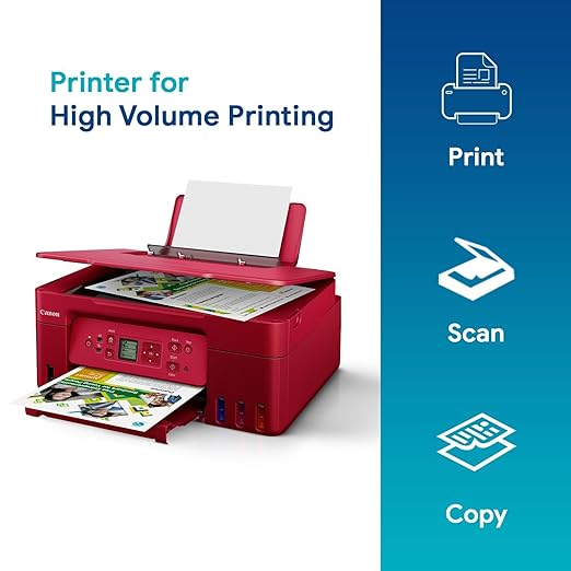Canon PIXMA MegaTank G3770 Red All-in-one (Print, Scan, Copy) WiFi Inktank Colour Printer (Black 6000 Prints & Colour 7700 Prints) for Office & Home