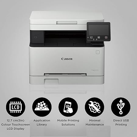 - Connectivity- USB 2.0, Wi-Fi, Canon PRINT Business, Canon Print Service, Google Cloud Print, Apple AirPrint, Mopria; Display panel- WVGA Colour LCD 12.7cm touch screen display